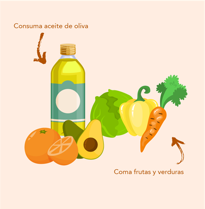 Según las Pautas dietéticas de EE. UU., la ingesta de grasas saturadas debe limitarse a menos del 10% de sus calorías diarias. La grasa saturada se encuentra comúnmente en carnes con alto contenido de grasa, productos lácteos enteros (por ejemplo, leche entera, helado, queso), mantequilla, aceite de coco, palmiche y aceite de palma. Disminuya la ingesta de grasas saturadas reduciendo el consumo de carnes, postres y bocadillos dulces con alto contenido de grasa. Controle el tamaño de sus porciones y limite la frecuencia con la que come este tipo de alimentos.
